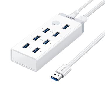 UGREEN/绿联 分线器usb3.0-7口配3C电源 ,带USB3.0A公对A公1米线 ,带5V/2A电源适配器 ,可充电 ,白色 ,30303