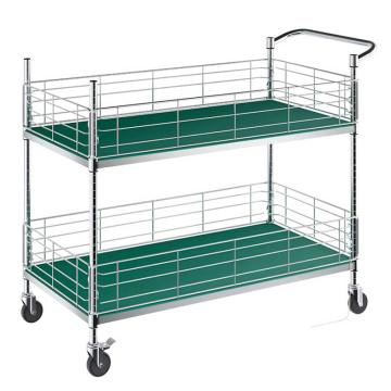 Uni-silent/连和 微静轮二层带护栏手推车,双扶手 带刹车架730X490mm 150kg,PLA150WS-T2-HL2-D