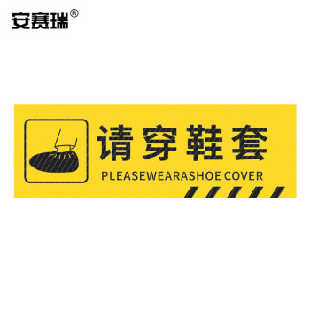 SAFEWARE/安赛瑞 pvc斜纹标识贴,防滑耐磨地贴,长40cm宽12cm,提示牌警示牌贴纸,请穿鞋套,310797