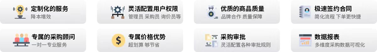 聚和商城为企业提供API集成型技术方案,助力企业完成采购商城搭建、丰富商城内工业品类目,从而实现采购全流程在线化,增强 采购业务管控和供应链韧性,从采购需求管理、高效寻价、采购执行、灵活支付、订单管理、 商品管理、组织管理、采购分析等方面 为企业提供数字化采购决策基础。